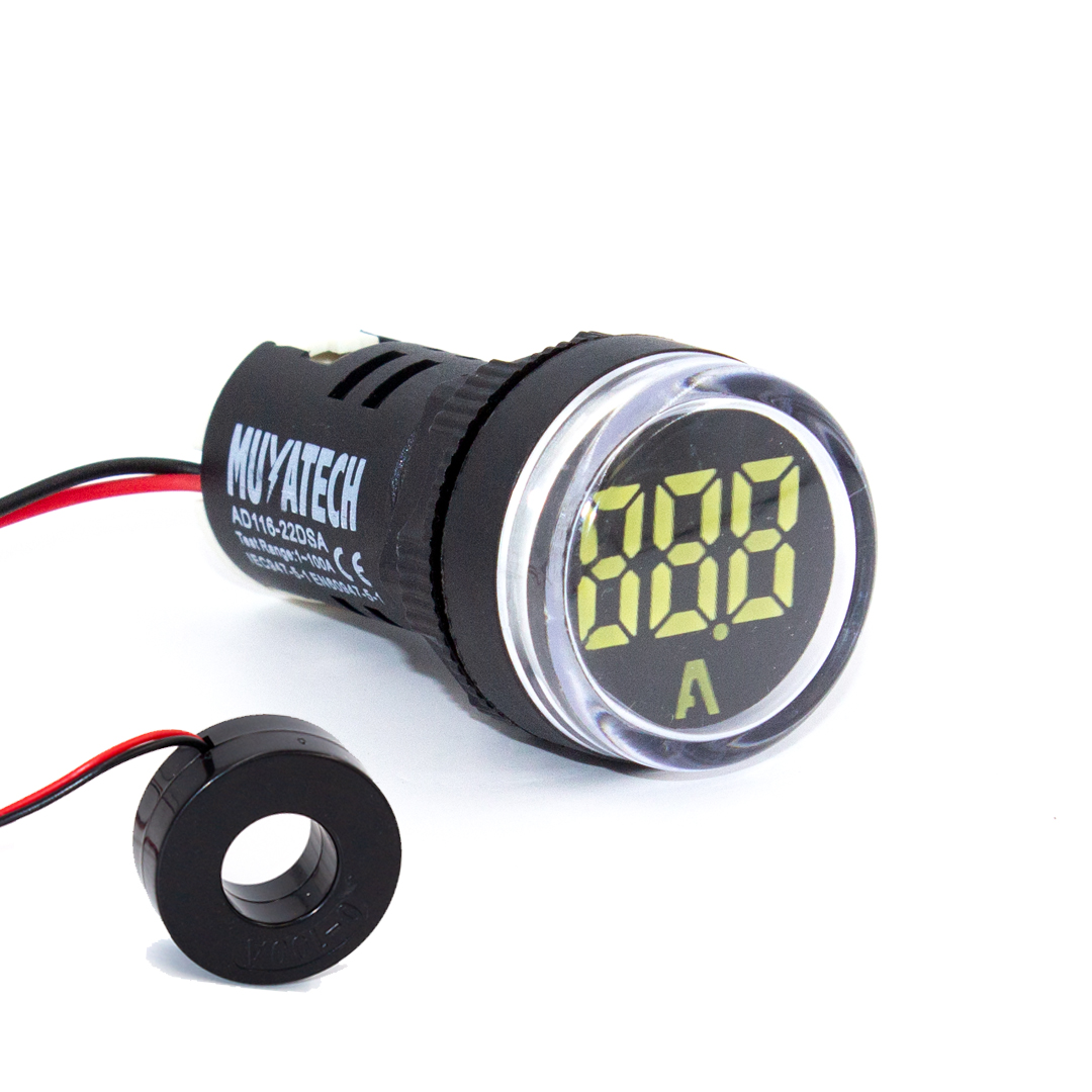 22mm Beyaz Dijital Ampermetre 0-100A (Akım Trafolu) - Muyatech M22 DSA-W