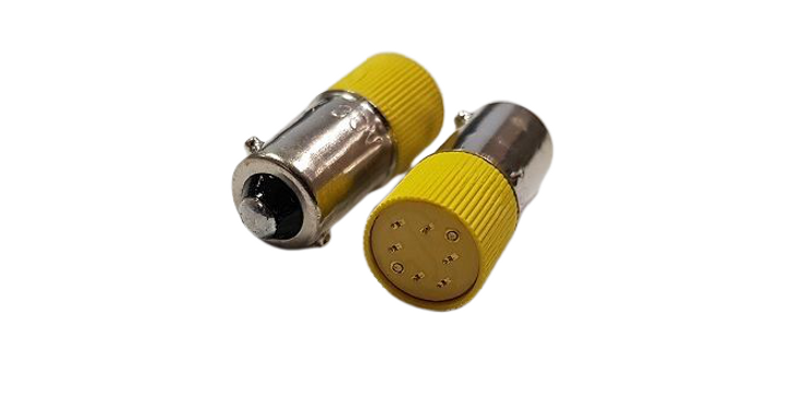 110 Volt ile çalışan endüstriyel tesislerde ve kontrol panellerinde, özellikle "Dikkat", "Beklemede" veya "Hata Uyarısı" gibi durumların net bir şekilde sinyalize edilmesi gerekir. Muyatech, bu zorlu koşullar için ürettiği BA9S LED Ampul Sarı 110V AC/DC (Ürün Kodu: MBA9SC-110-Y) ile üstün performans ve uzun ömür garantisi sunar.
