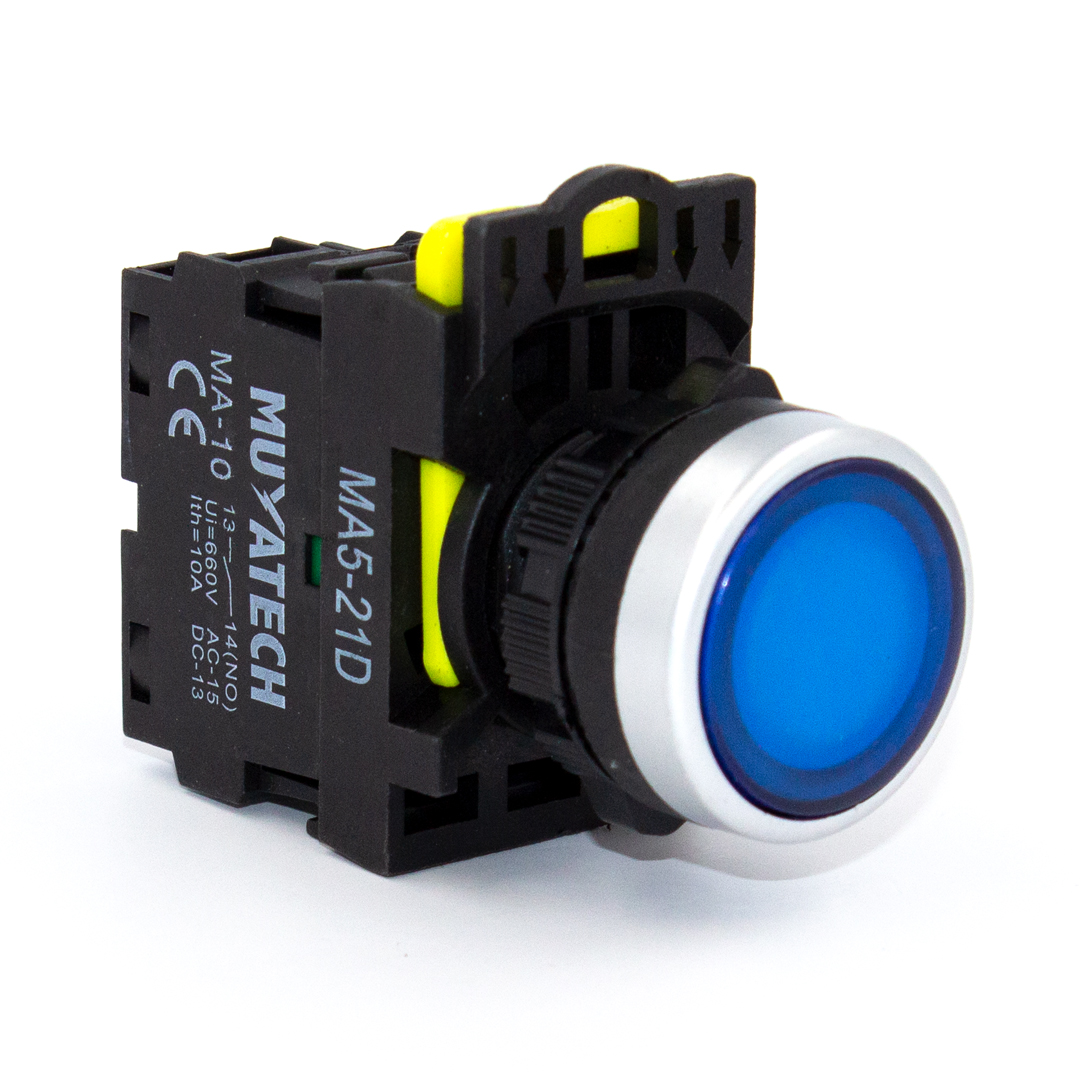 Panellerinize modern bir dokunuş ve net bir görsel geri bildirim eklemek için Muyatech MA5-21D-24 Mavi Işıklı Butonu hemen sepetinize ekleyin!