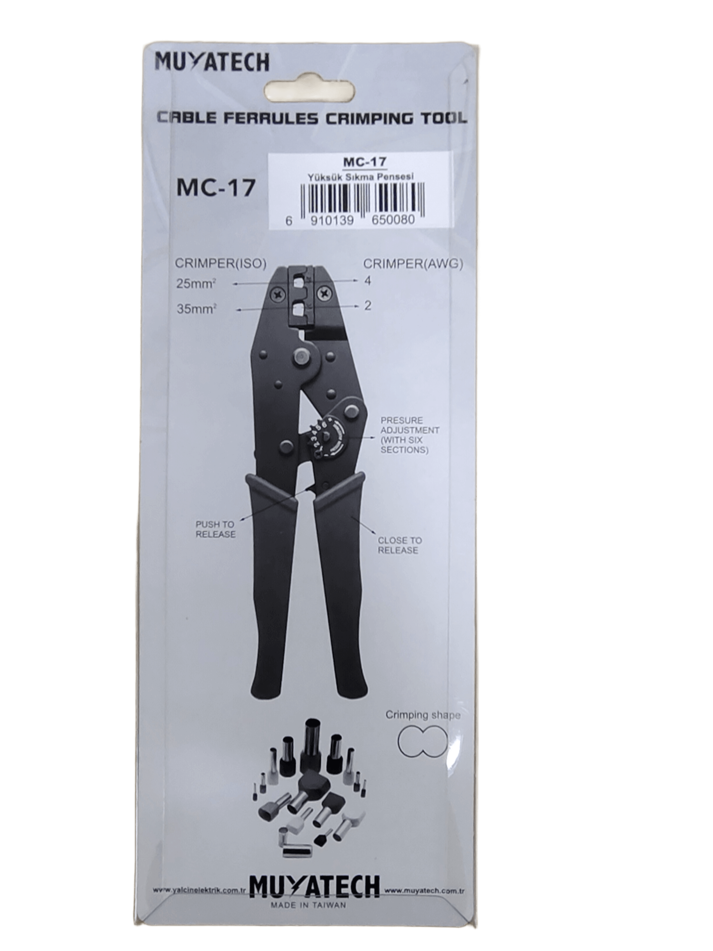 İster bir elektrik panosu montajı, ister endüstriyel bir otomasyon projesi olsun, MC-17 (YAC-17) yüksük sıkma pensesi ile kablo sonlandırma işlemlerinizi hızlı, güvenli ve standartlara uygun bir şekilde tamamlayın.